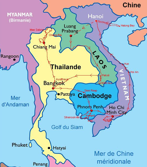 Notre zone d'intervention se situe dans les pays suivants du sud est de l'Asie: